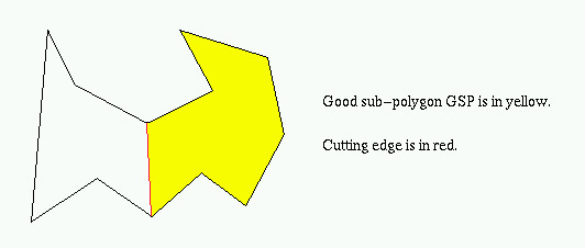 A good sub-polygon of a simple polygon P, denoted by GSP, is a sub-polygon whose boundary differs from that of P by at most one edge. This edge, if it exists, is called the cutting edge [1].