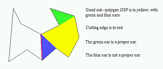 A proper ear of a good sub-polygon GSP is an ear of GSP which is not an end-point of the cutting edge of P [1].
