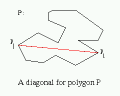 A diagonal is a line segment lying entirely inside polygon P and joining two non-consecutive vertices pi and pj